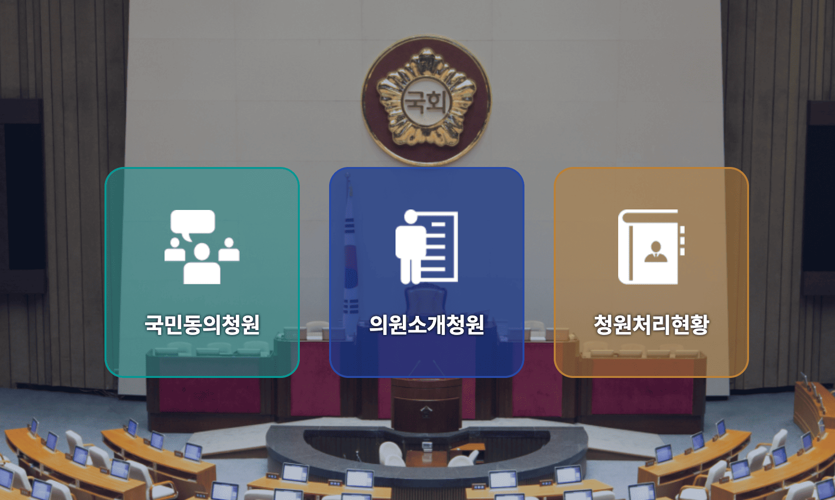 국민청원은 국회 국민동의청원 홈페이지에서 간단히 참여할 수 있습니다.