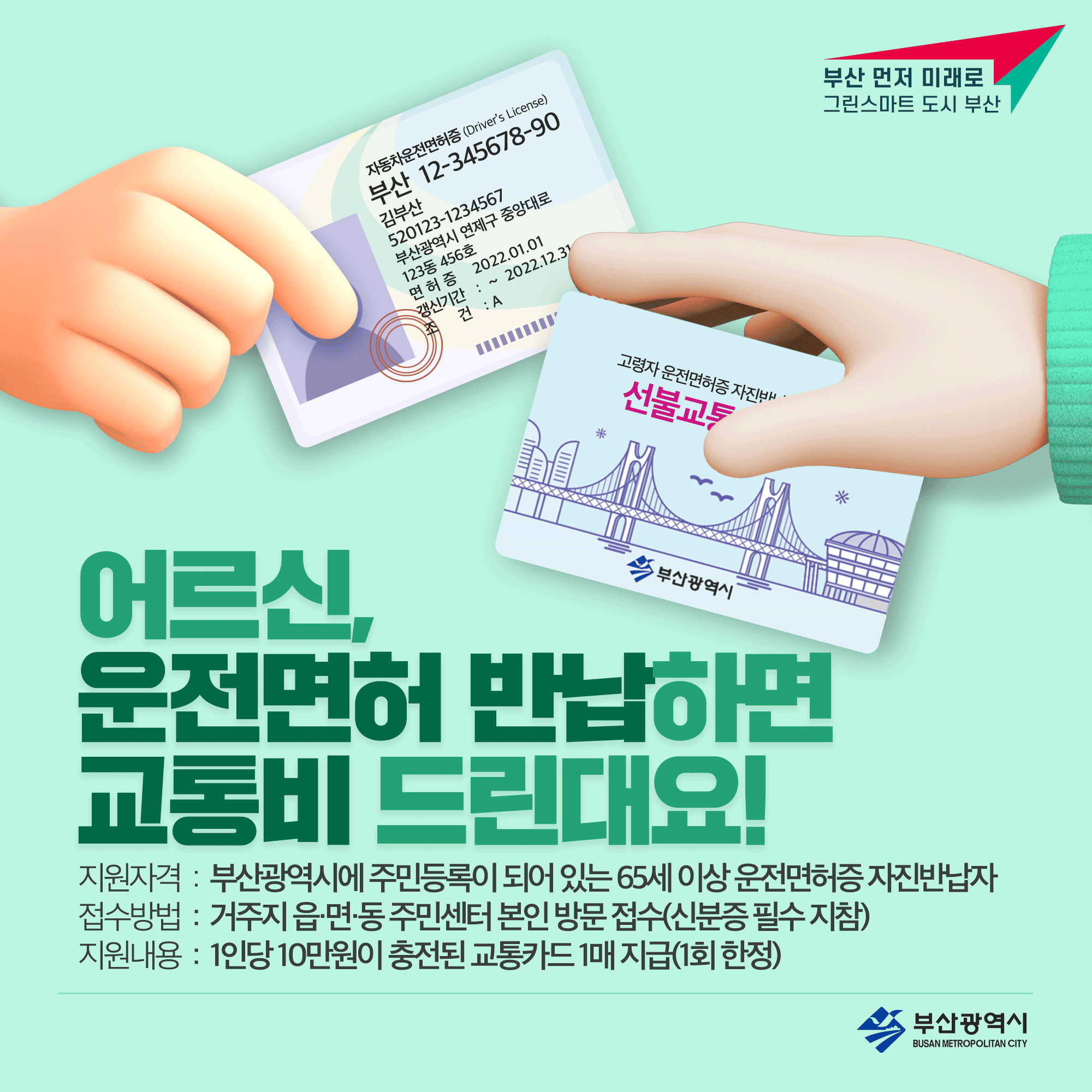 고령 운전자 면허 반납은 본인과 가족의 안전을 지키는 동시에 현금성 혜택을 받을 수 있는 좋은 기회입니다.